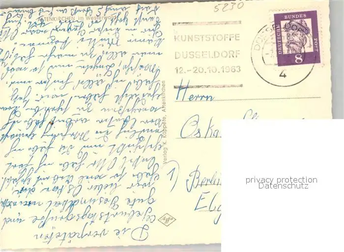Altenkirchen_Westerwald Durchblick vom Waldrand aus Altenkirchen_Westerwald postalisch gelaufen 1963 Erhaltung siehe scans [FriedD77] Frierer