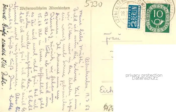 Altenkirchen_Westerwald Westerwaldheim Aussenansicht Altenkirchen_Westerwald postalisch gelaufen 1952 Erhaltung siehe scans [LiesaD40] LiesID40