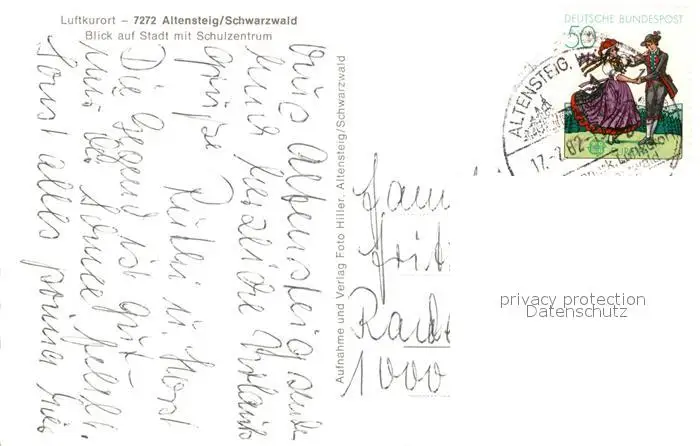 Altensteig_Schwarzwald Blick auf Stadt mit Schulzentrum Altensteig_Schwarzwald postalisch gelaufen 1982 Erhaltung siehe scans [FriedD77] Frierer