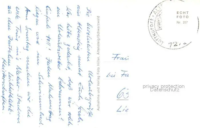 Altensteig_Schwarzwald Durchblick zum Luftkurort Altensteig_Schwarzwald postalisch gelaufen 1921-1965 Erhaltung siehe scans [FriedD77] Frierer