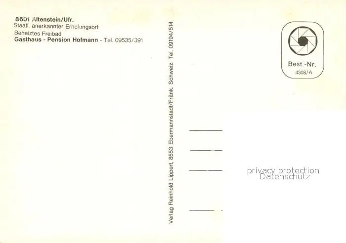 Altenstein_Hassberge Blick ueber die Felder Ruine Kirche Freibad Altenstein_Hassberge postalisch nicht gelaufen nach 1965 Erhaltung siehe scans [FriedD77] Frierer