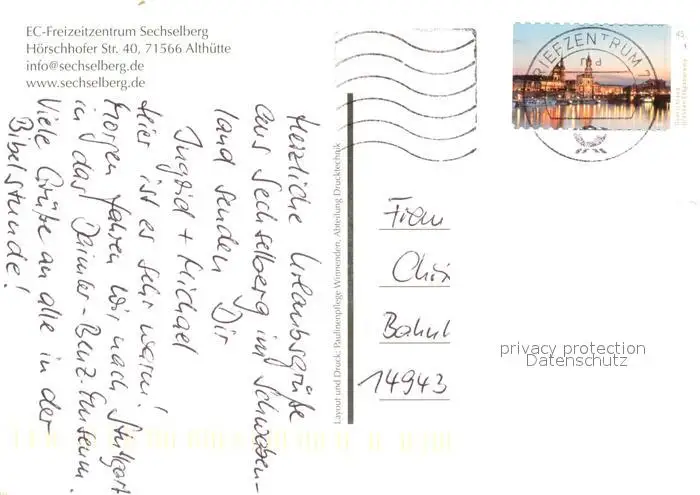 Althuette_Wuerttemberg EC Freizeitzentrum Sechselberg Althuette Wuerttemberg postalisch gelaufen nach 1965 Erhaltung siehe scans [WerneD78] WernPID7