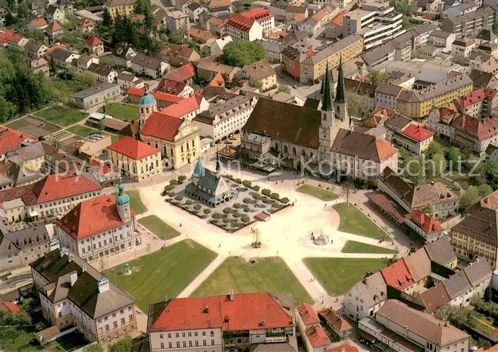 Altoetting Kapellplatz Zentrum Fliegeraufnahme Altoetting postalisch nicht gelaufen nach 1965 Erhaltung siehe scans [FriedD77] Frierer
