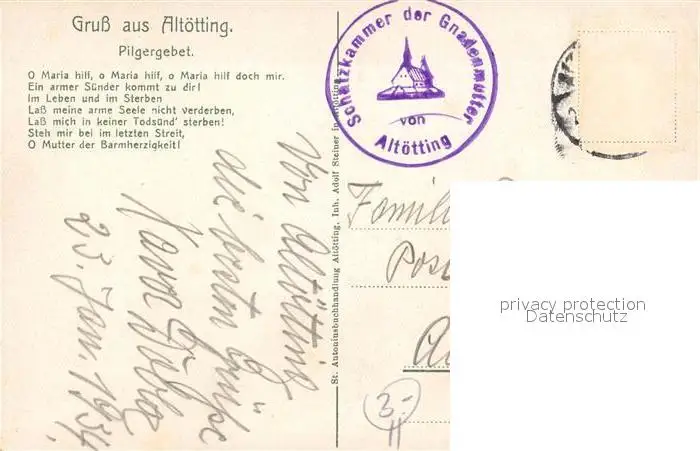 Altoetting Prozession um den Kapellplatz Altoetting postalisch nicht gelaufen bis 1920 Erhaltung siehe scans [WerneD78] WernPID7