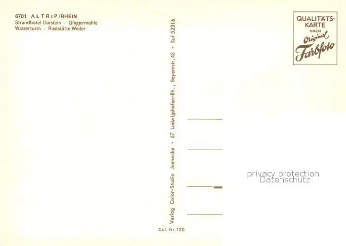 Altrip Kategorie Alte Ansichtskarten Postkarten bx53102 Altrip Strandhotel Darstein Gliggermuehle Wasserturm Raststaette Weiler Altrip postalisch nicht gelaufen nach 1965 Erhaltung siehe scans [WerneD78]