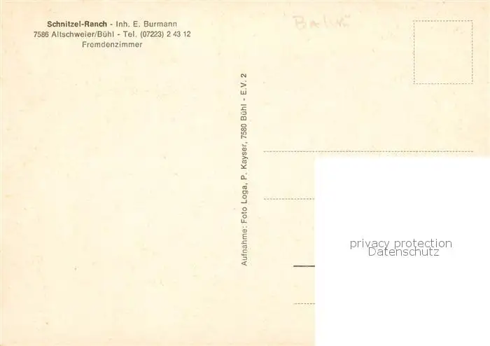 Altschweier Schnitzel-Ranch im Schwarzwald Restaurant Altschweier postalisch nicht gelaufen nach 1965 Erhaltung siehe scans [FriedD77] Frierer