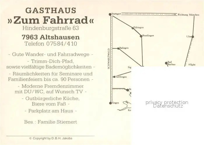 Altshausen Gasthaus Zum Fahrrad Gastraum Zimmer Altshausen postalisch nicht gelaufen nach 1965 Werbekarte (keine Postkarte) Erhaltung siehe scans [WerneD78] Werbekarte (keine Postkarte) WernPID7