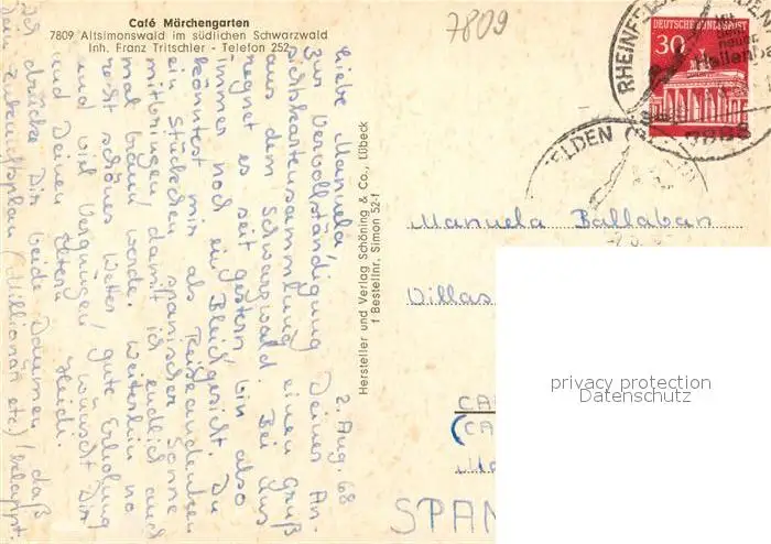 Altsimonswald Cafe Maerchengarten Altsimonswald postalisch gelaufen 1968 Erhaltung siehe scans [KathaD81] Kathoren