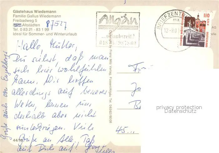 Altstaedten_Allgaeu Gaestehaus Wiedemann Gaststube Panorama Altstaedten_Allgaeu postalisch gelaufen 2001 Erhaltung siehe scans [WerneD78] WernPID7