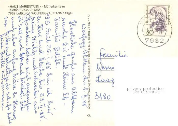 Alttann_Allgaeu Haus Marientann Liegewiese Radfahrer Gaststuben Hallenbad Alttann Allgaeu postalisch gelaufen 1988 Erhaltung siehe scans [WerneD78] WernPID7