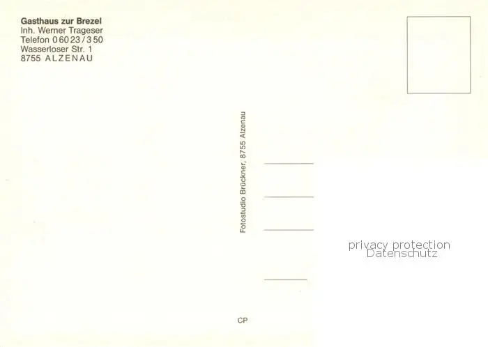 Alzenau_Unterfranken Gasthaus zur Brezel Alzenau Unterfranken postalisch nicht gelaufen 1921-1965 Erhaltung siehe scans [FriedD77] Frierer