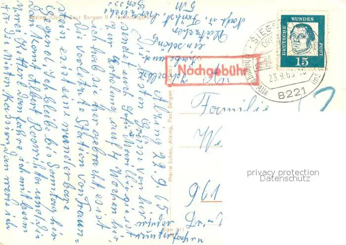 Alzing_Traunstein Genesungsheim Alzing_Traunstein postalisch gelaufen 1965 Erhaltung siehe scans [FriedD77] Frierer