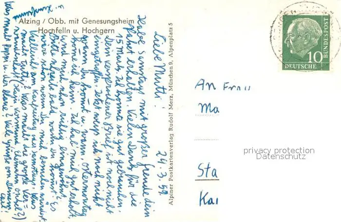 Alzing_Traunstein mit Genesungsheim Hochfelln und Hochgern Alzing_Traunstein postalisch gelaufen 1959 Erhaltung siehe scans [WerneD78] WernPID7