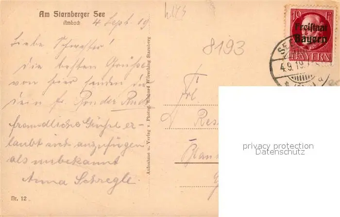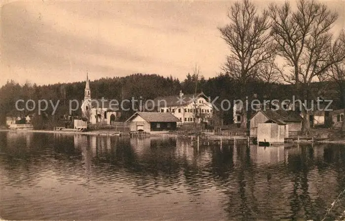 Ambach_Starnbergersee Kirche Ortsansicht Ambach_Starnbergersee postalisch gelaufen 1919 Erhaltung siehe scans [KathaD81] Kathoren