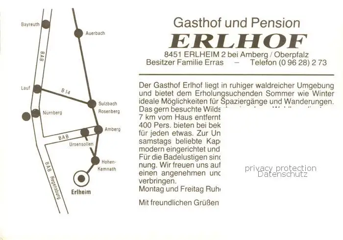 Amberg_Oberpfalz Erlhof Gasthof Pension Gastraeume Bar Amberg Oberpfalz postalisch nicht gelaufen nach 1965 Werbekarte (keine Postkarte) Erhaltung siehe scans [WerneD78] Werbekarte (keine Postkarte) WernPID7