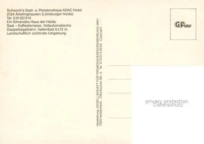 Amelinghausen_Lueneburger_Heide Schencks Gast und Pensionshaus Amelinghausen_Lueneburger postalisch nicht gelaufen nach 1965 Erhaltung siehe scans [WerneD78] WernPID7