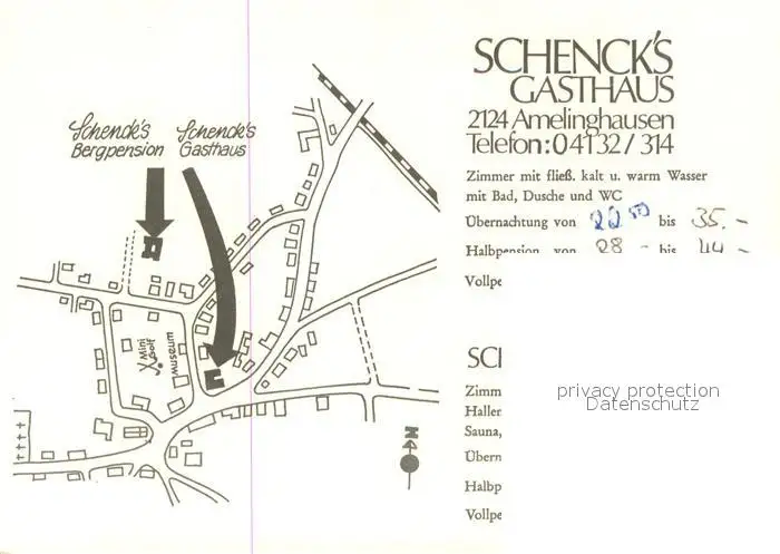 Amelinghausen_Lueneburger_Heide Schencks Gasthaus mit Bergpension Amelinghausen_Lueneburger postalisch nicht gelaufen nach 1965 Werbekarte (keine Postkarte) Erhaltung siehe scans [FriedD77] Werbekarte (keine Postkarte) Frierer