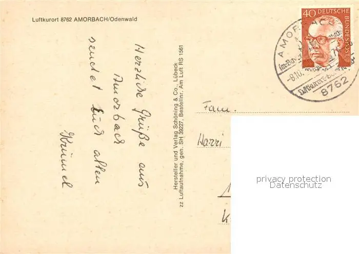 Amorbach_Miltenberg Fliegeraufnahme postalisch gelaufen nach 1965 Erhaltung siehe scans [KathaD81] Kathoren