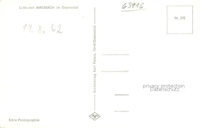 Amorbach_Miltenberg Fliegeraufnahme Teilansicht Odenwald postalisch nicht gelaufen 1962 Erhaltung siehe scans [LiesaD40] LiesID40