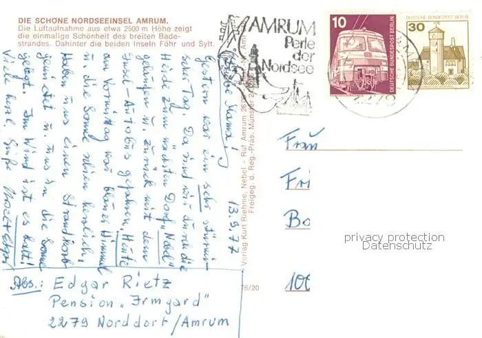 Amrum Fliegeraufnahme Gesamtansicht Amrum postalisch gelaufen 1977 Erhaltung siehe scans [LiesaD40] LiesID40