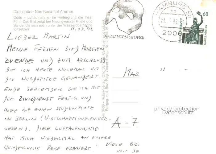 Amrum Fliegeraufnahme mit Insel Foehr Amrum postalisch gelaufen 1992 Erhaltung siehe scans [LiesaD40] LiesID40