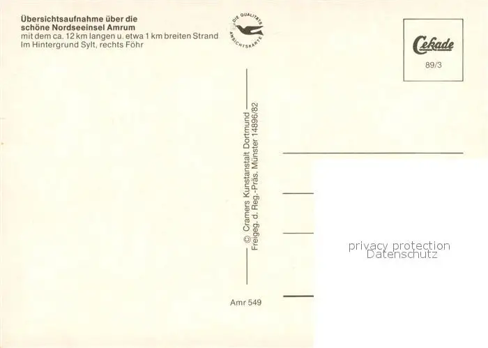 Amrum Fliegeraufnahme mit Insel Foehr im Hintergrund Amrum postalisch nicht gelaufen nach 1965 Erhaltung siehe scans [WerneD78] WernPID7
