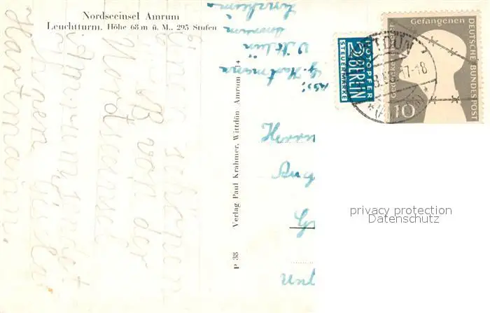 Amrum Leuchtturm Amrum postalisch gelaufen 1953 Erhaltung siehe scans [LiesaD40] LiesID40