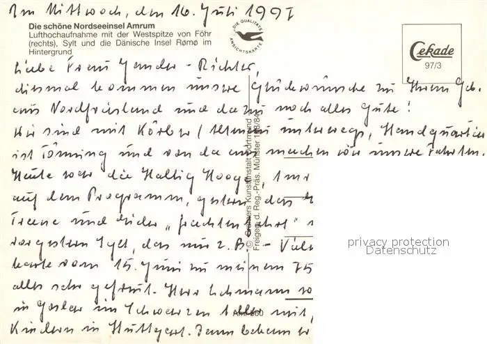 Amrum Nordseeinsel Fliegeraufnahme Amrum postalisch nicht gelaufen 1997 Erhaltung siehe scans [FriedD77] Frierer