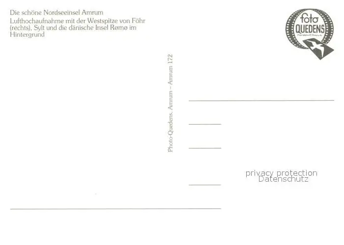 Amrum Nordseeinsel Westspitze von Foehr Sylt und Insel Romo Daenemark Fliegeraufnahme Amrum postalisch nicht gelaufen nach 1965 Erhaltung siehe scans [FriedD77] Frierer