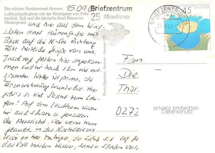 Amrum Nordseeinsel mit Insel Foehr Sylt Amrum postalisch gelaufen 2003 Fliegeraufnahme Erhaltung siehe scans [FriedD77] Fliegeraufnahme Frierer