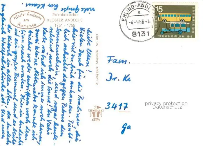 Andechs Kloster Andechs Fliegeraufnahme Andechs postalisch gelaufen 1965 Erhaltung siehe scans [WerneD78] WernPID7