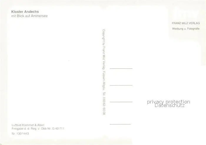 Andechs Kloster Andechs mit Blick auf den Ammersee Fliegeraufnahme Andechs postalisch nicht gelaufen nach 1965 Erhaltung siehe scans [FriedD77] Frierer