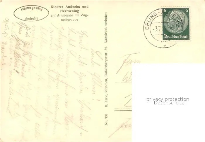 Andechs Kloster Andechs und Herrsching am Ammersee mit Zugspitzgruppe Andechs postalisch gelaufen 1939 Erhaltung siehe scans [WerneD78] WernPID7
