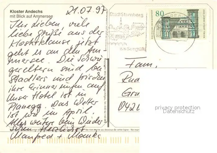 Andechs Kloster mit Blick auf den Ammersee Andechs postalisch gelaufen 1997 Fliegeraufnahme Erhaltung siehe scans [FriedD77] Fliegeraufnahme Frierer