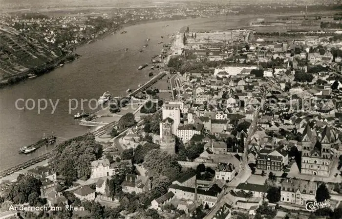 Andernach Kategorie Alte Ansichtskarten Postkarten bx62251 Andernach Fliegeraufnahme Kirche Andernach postalisch gelaufen 1962 Bahnpost Erhaltung siehe scans [KathaD81]