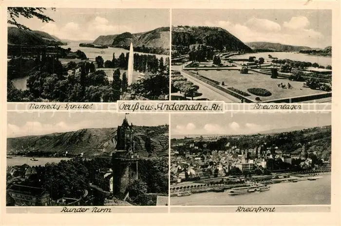 Andernach Landschaftspanorama Namedysprudel Rheinanlagen Runder Turm Andernach postalisch nicht gelaufen 1945 Erhaltung siehe scans [FriedD77] Frierer