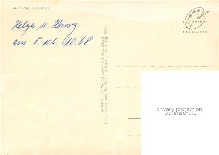 Andernach_Rhein Fliegeraufnahme Andernach Rhein postalisch nicht gelaufen 1968 Erhaltung siehe scans [WerneD78] WernPID7