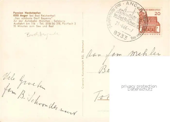 Anger_Bad_Reichenhall Pension Hochstaufen Gastraum Kirche Panorama postalisch gelaufen 1966 Erhaltung siehe scans [WerneD78] WernPID7