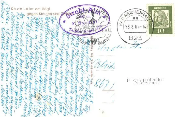 Anger_Stauffen Strobl Alm am Hoegl Anger_Stauffen postalisch gelaufen 1962 Erhaltung siehe scans [WerneD78] WernPID7