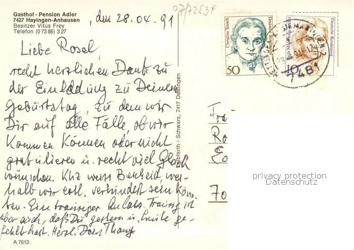 Anhausen_Hayingen Gasthof Pension Adler Gastraeume Panorama Felsformation Anhausen Hayingen postalisch gelaufen 1991 Erhaltung siehe scans [WerneD78] WernPID7