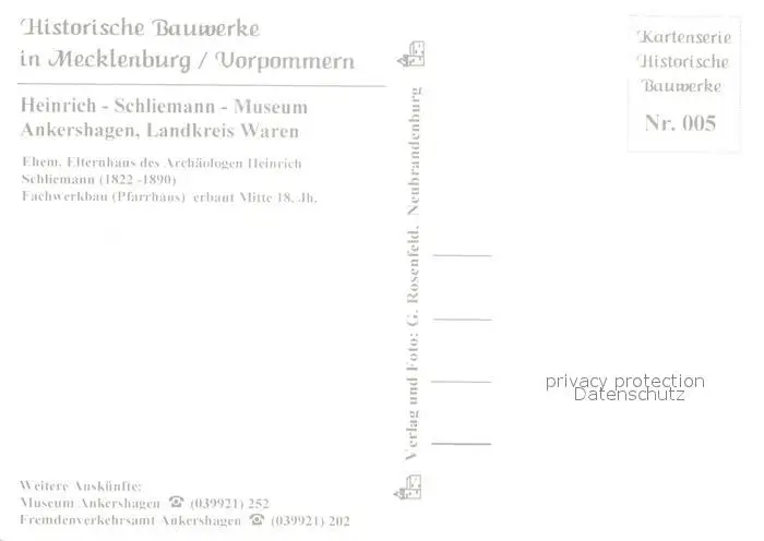 Ankershagen Heinrich Schliemann Museum Ankershagen postalisch nicht gelaufen nach 1965 Erhaltung siehe scans [WerneD78] WernPID7