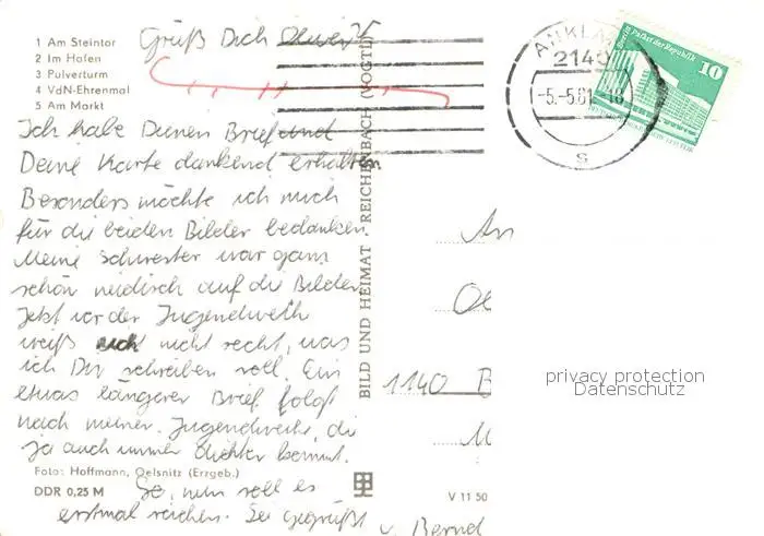 Anklam Am Steintor Hafen Pulverturm VdN Ehrenmal Am Markt Anklam postalisch gelaufen 1981 Erhaltung siehe scans [WerneD78] WernPID7