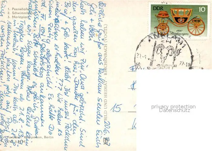 Anklam Peenehafen Schwimmhalle Marktplatz Anklam postalisch gelaufen 1977 Erhaltung siehe scans [FriedD77] Frierer