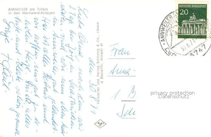 Annweiler_Trifels Markward Anlagen Wasserrad Annweiler_Trifels postalisch gelaufen 1971 Erhaltung siehe scans [FriedD77] Frierer