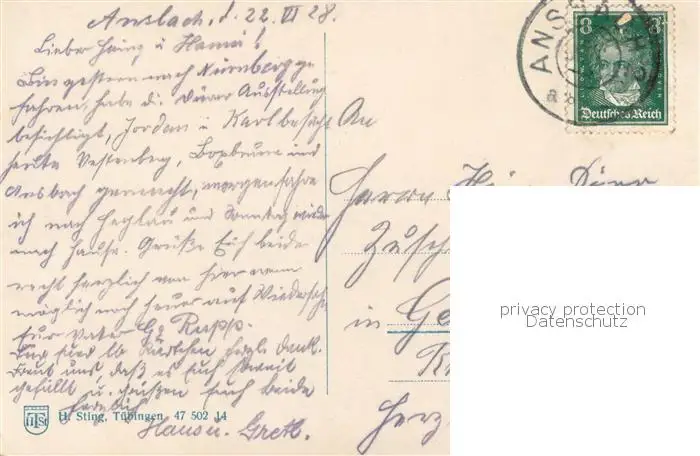 Ansbach_Mittelfranken Blick zur Altstadt mit Kirche Ansbach Mittelfranken postalisch gelaufen 1928 Erhaltung siehe scans [FriedD77] Frierer