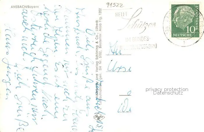 Ansbach_Mittelfranken Fliegeraufnahme Totalansicht Ansbach Mittelfranken postalisch gelaufen 1959 Erhaltung siehe scans [LiesaD40] LiesID40