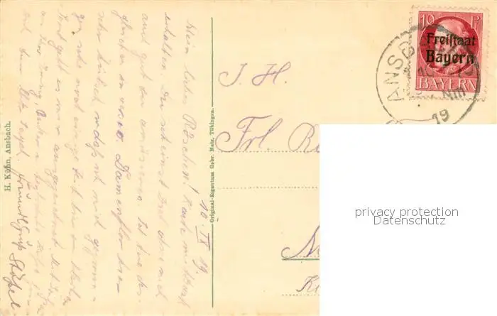 Ansbach_Mittelfranken Maximilianstrasse Ansbach Mittelfranken postalisch gelaufen 1919 Erhaltung siehe scans [FriedD77] Frierer
