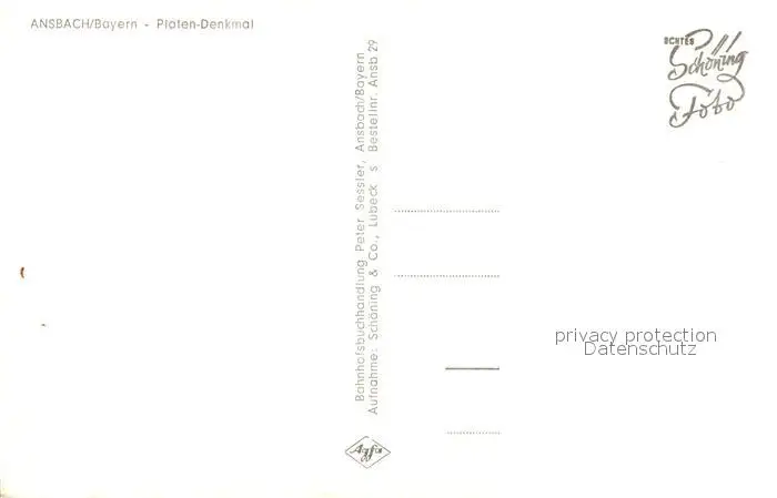 Ansbach_Mittelfranken Platen Denkmal Statue Ansbach Mittelfranken postalisch nicht gelaufen 1921-1965 Erhaltung siehe scans [FriedD77] Frierer