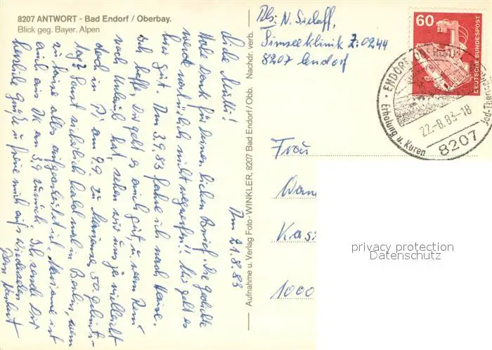 Antwort Ortsansicht mit Kirche Blick gegen Bayerische Apen Antwort postalisch gelaufen 1983 Erhaltung siehe scans [FriedD77] Frierer