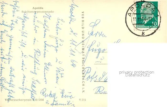 Apolda Schoetenerpromenade Apolda postalisch gelaufen 1964 Erhaltung siehe scans [WerneD78] WernPID7